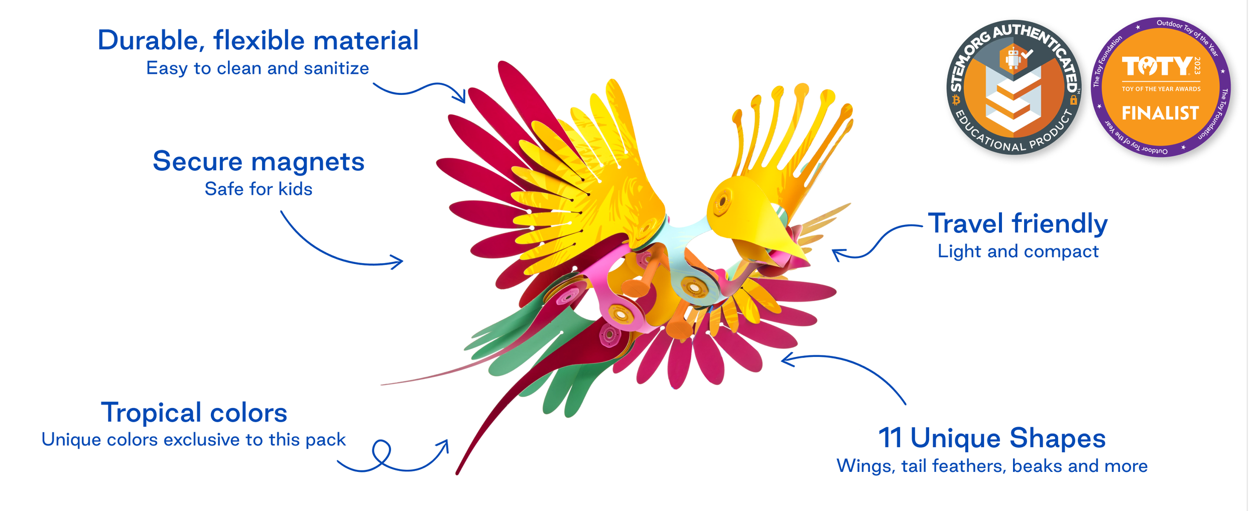 During my time so far I have worked on several projects, including two new sets, Clixo’s first themed packs: Mars Rovers, Ocean Creatures, Tropical Birds and the Jewelry Pack. This included everything from sketching initial concepts, designing new shapes, coming up with what can be built with each set and even laying out the instructions to create them. It also included development of new parts like the Duo Axle bracket, which for the first time has reversible magnets for a perfect connection, regardless of polarity. “Mars Rovers Pack” recently won a 2024 Core77 Design Award for Toys & Play.