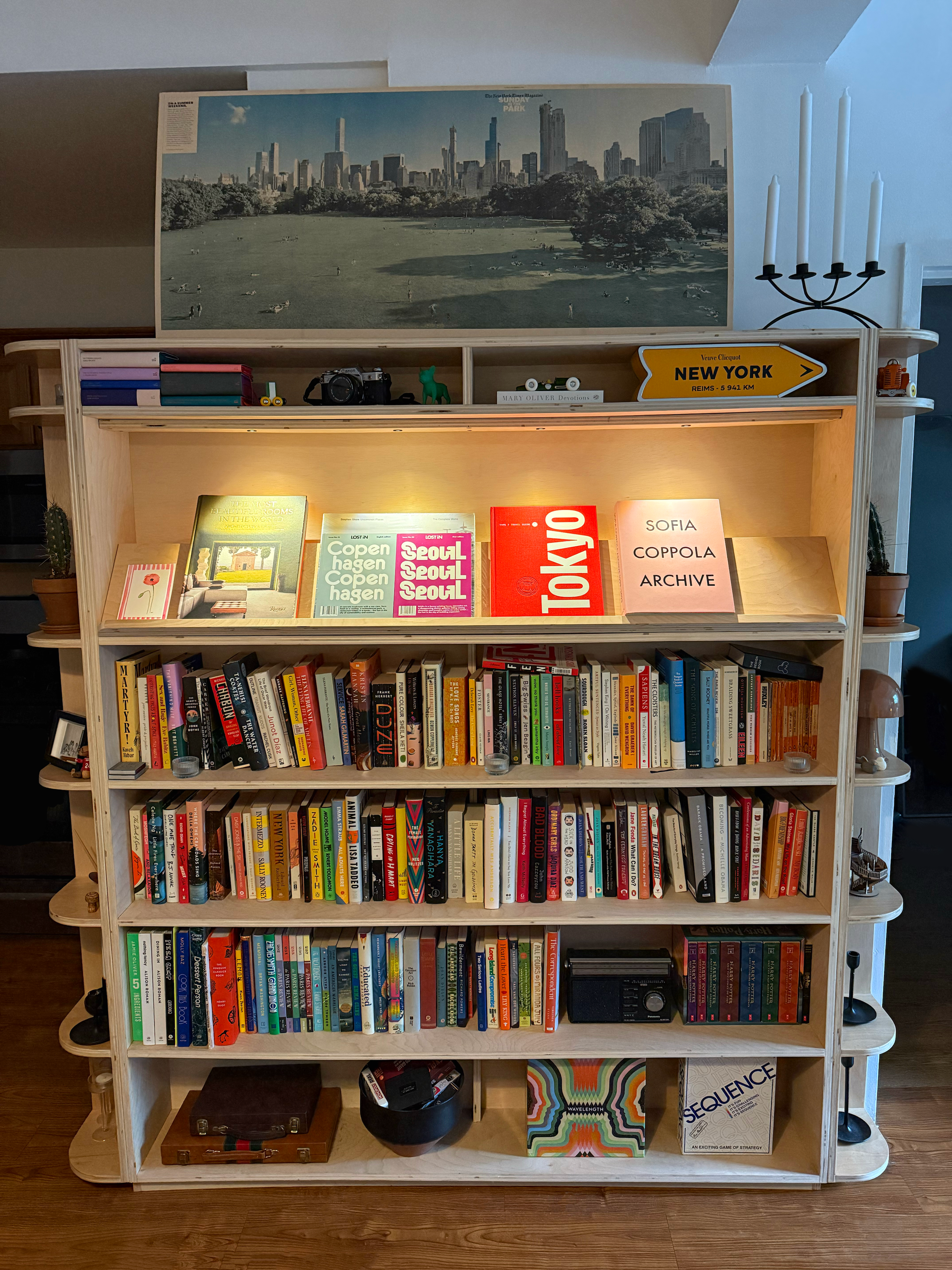 I love the glass brick lights that are currently popular, but don’t like that they use LEDs. I find they can limit the ability to dim smoothly and prevent you from getting that warm halogen glow. I decided to try and make my own with off the shelf parts I found and some extra scrap wood.